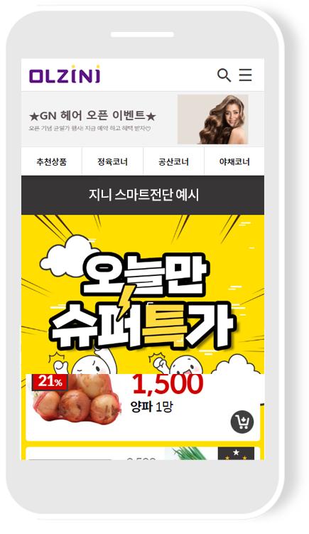 올지니 모먼트 스마트 배너는 올지니 스마트 전단 지면의 영역에 노출됩니다.